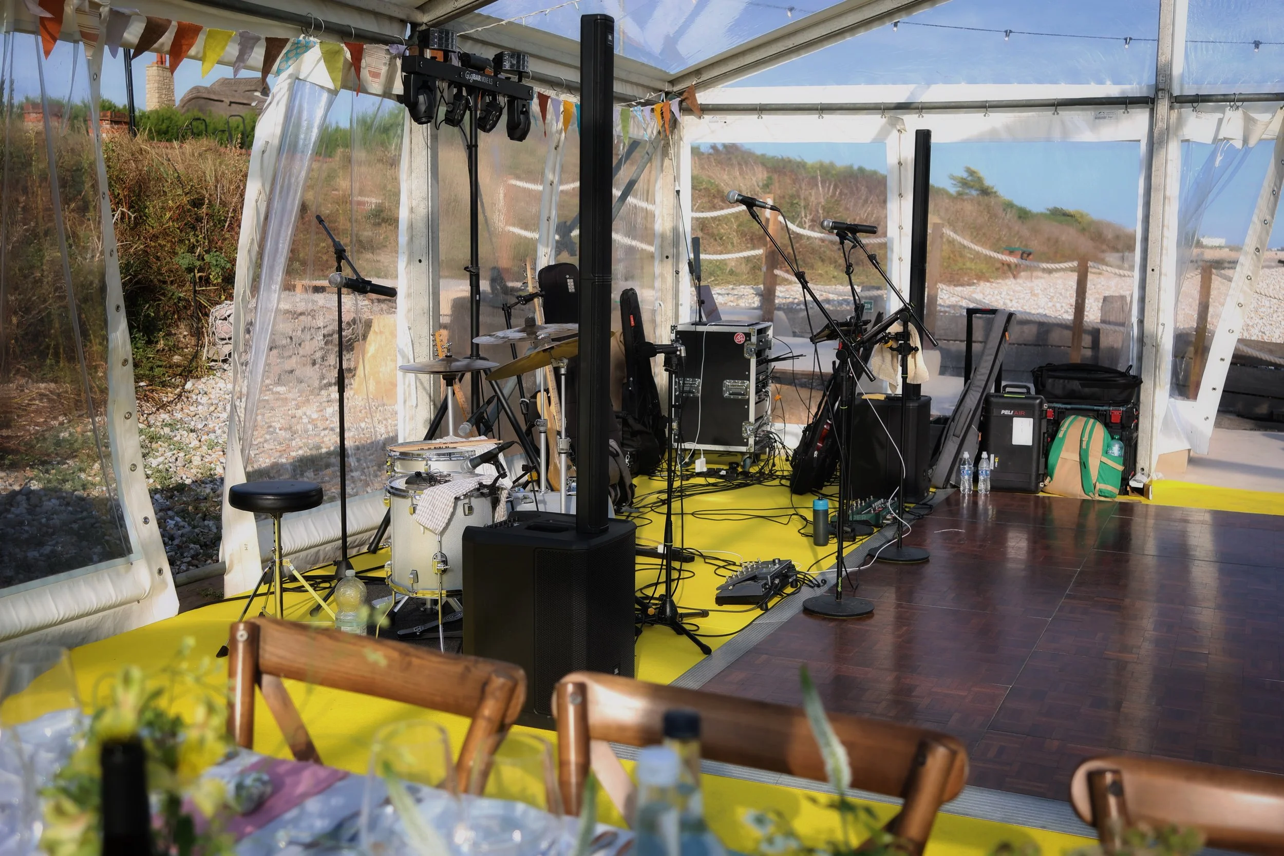 This is only one example of what our band rig can look like. Our sound rig packs down to an easy to move package. With everything neatly organised and stored so that setting up and packing down is quick and painless. Get in touch for a custom quote depending on your requirements!